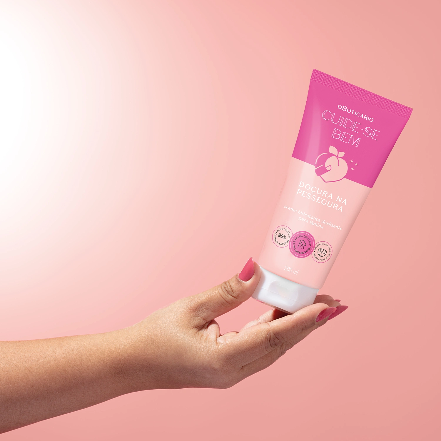 O Creme Hidratante Deslizante Para Lâmina Cuide-se Bem Doçura na Pessegura pode ser usado dentro ou fora do banho e auxilia quem usa lâmina na hora de se depilar.