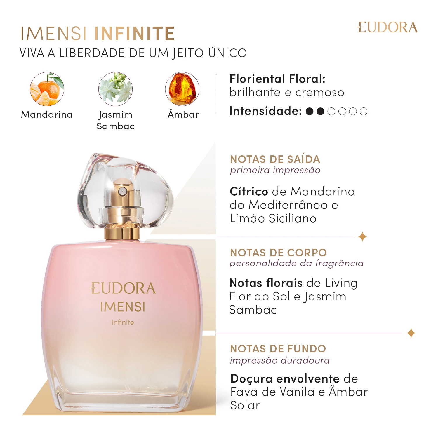 Em uma nova etapa da sua jornada, Imensi Infinite é o desodorante colônia da perfumaria feminina de Eudora que te convida a viver uma experiência paradisíaca na Grécia, explorando esse destino que entrega paisagens exuberantes e horizontes infinitos.