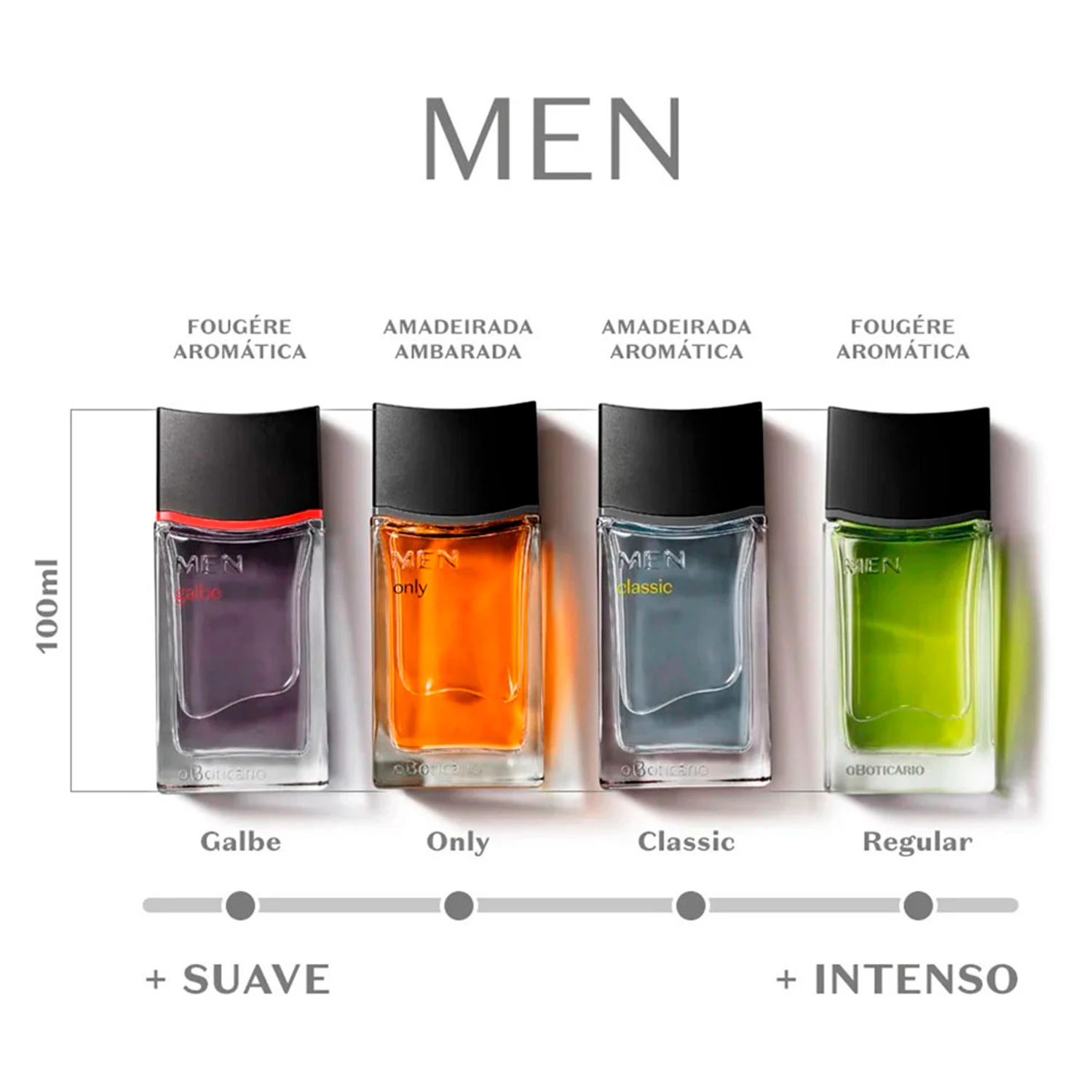 Trazendo uma experiência olfativa inovadora a cada aplicação, o desodorante colônia proporciona sensação refrescante e intensa. A perfumação da família olfativa Fougère Aromático conta com notas frutais combinadas com Sândalo, Musk e Cumarina. A edição de 100ml tem o tamanho ideal para carregar em bolsas ou mochilas, permitindo aplicação sempre que necessário.